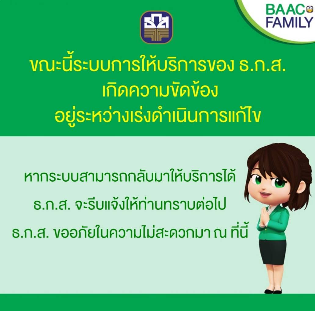 ธ ก ส ขอแจ งป ดระบบช วคราว ธกส Baac Thailand Facebook