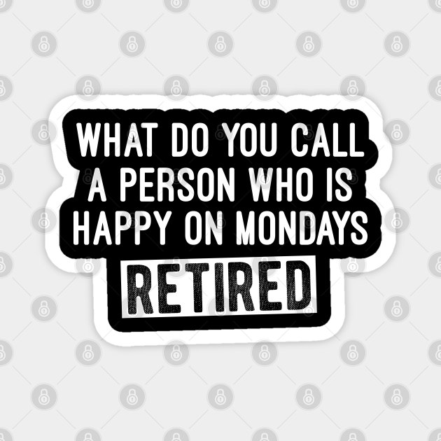 Funny Retirement Sayings Gift What Do You Call A Person Who Is Happy On Mondays What Do You Call A Person Who Is Happy Magnet Teepublic
